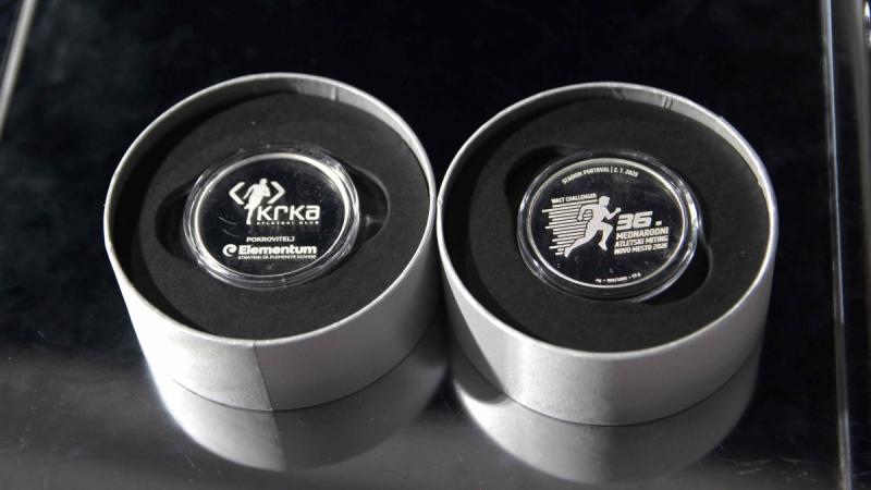 Podjetje Elementum je Atletskemu klubu Krka predalo šest unikatnih srebrnikov kot donacijo ob 36. mednarodnem atletskem mitingu v Novem mestu.