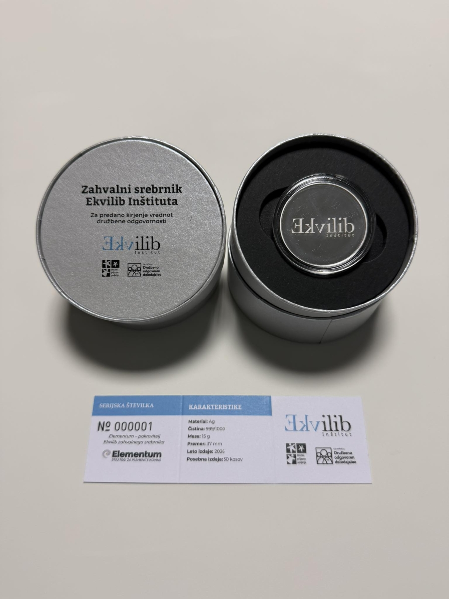 »Poslanstvo Ekvilib inštituta je širjenje družbene odgovornosti med posamezniki, podjetji in širšo družbo. To poslanstvo uresničujemo že več kot 22 let. V tem času smo srečali veliko posameznikov, ki jim ni vseeno za svet prihodnosti. Pobuda podjetja Elementum in naše sodelovanje predstavljata lepo kombinacijo – plemenit namen lahko nagradimo tudi s plemenitim srebrnikom,« pravi g. Kranjc Kušlan.